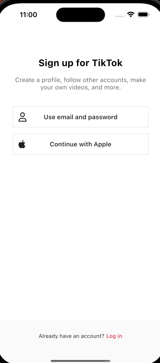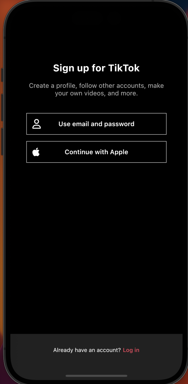 "Sign up for TikTok",