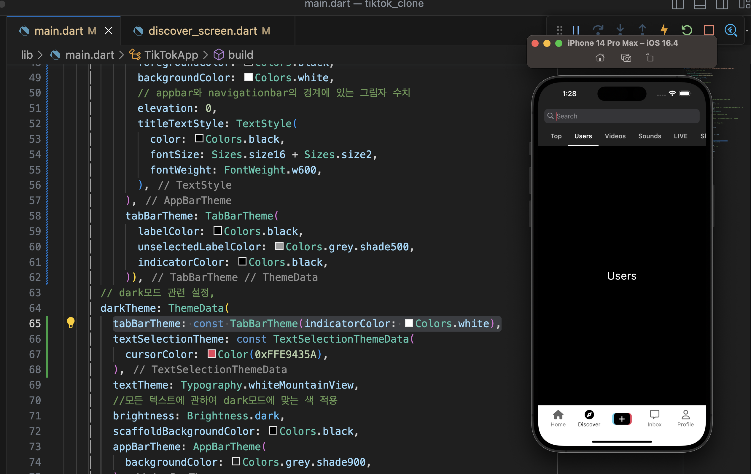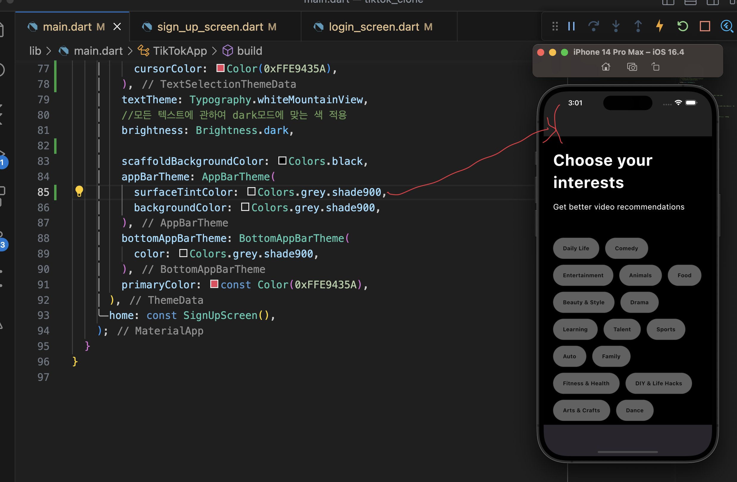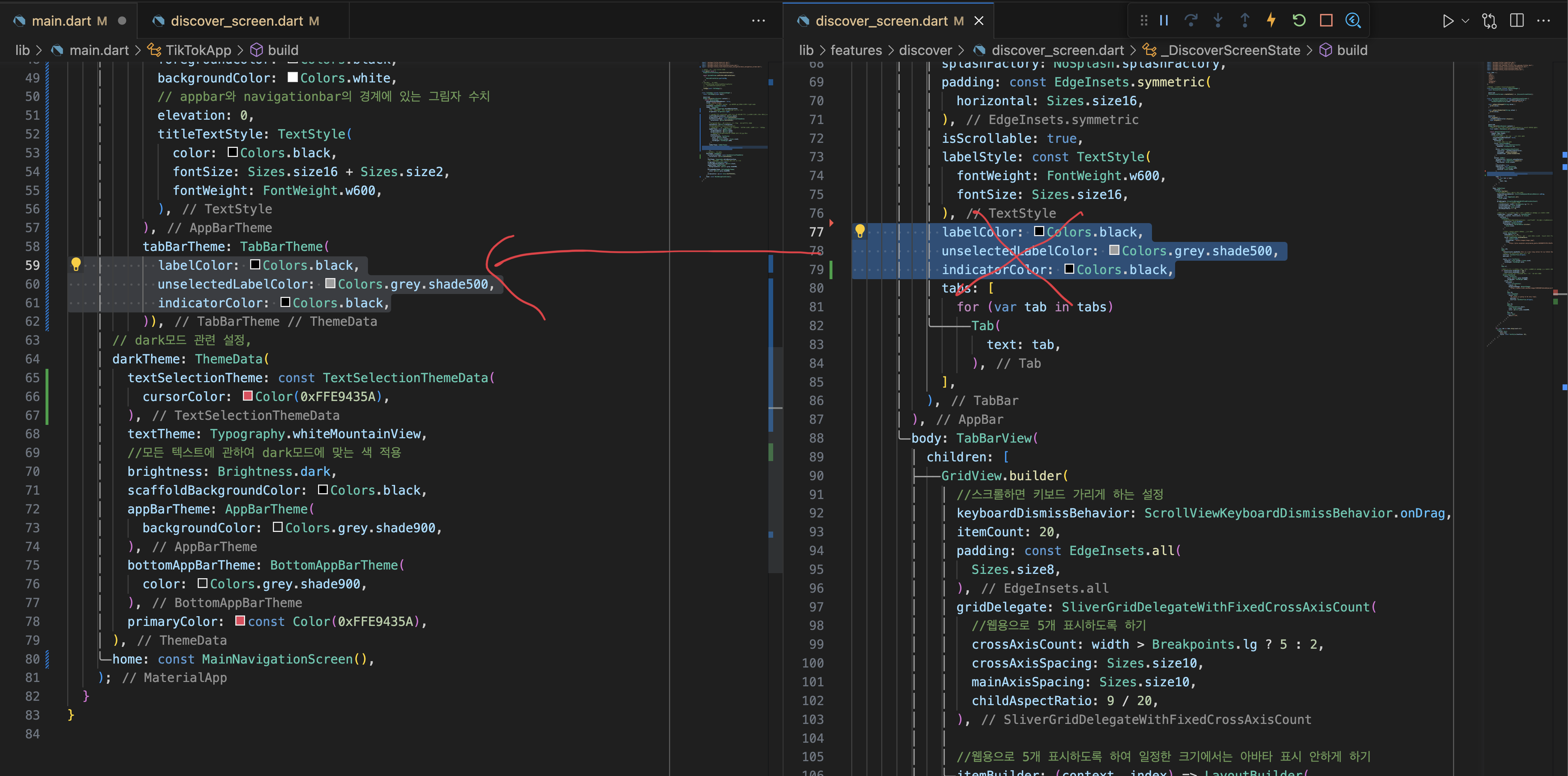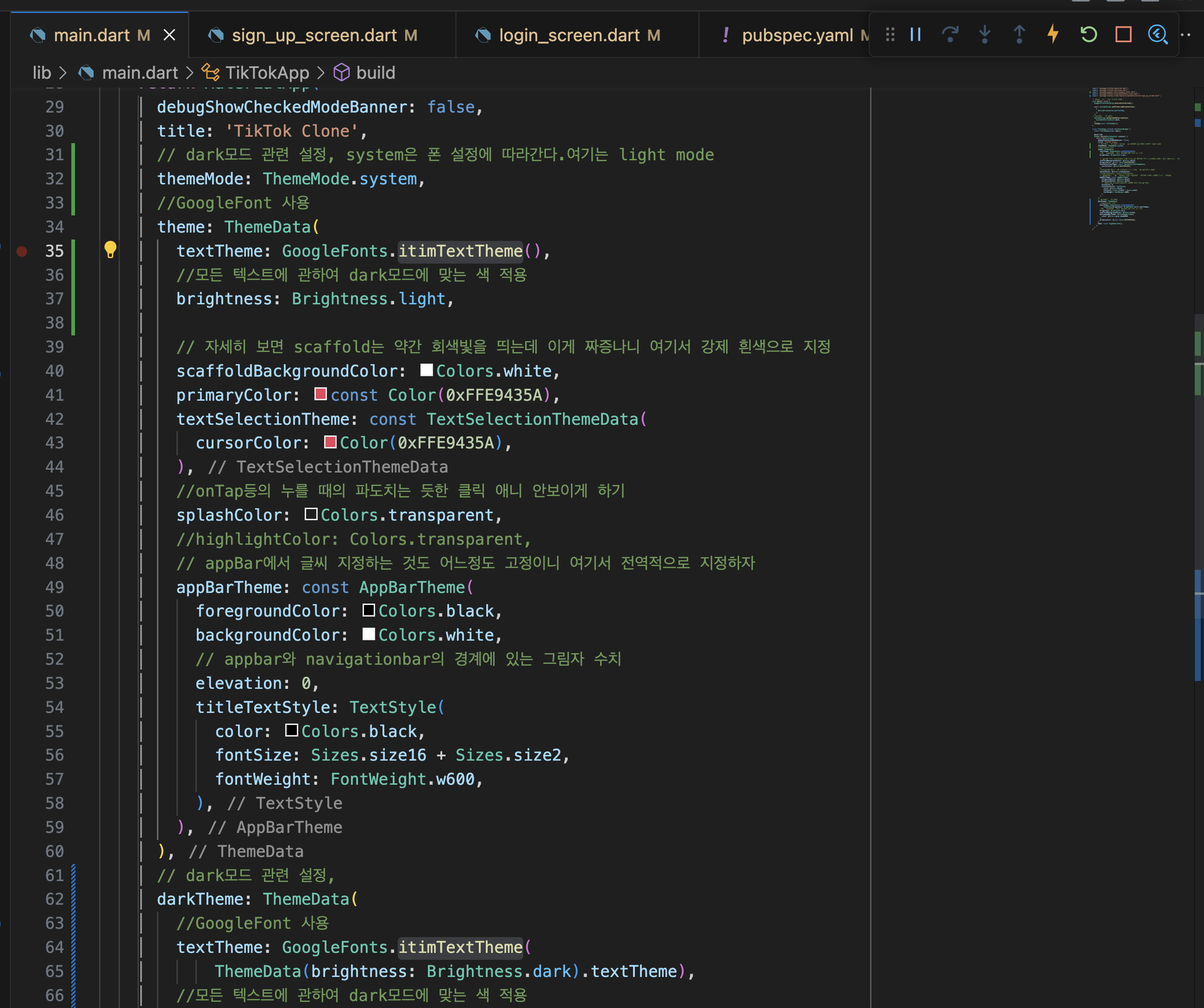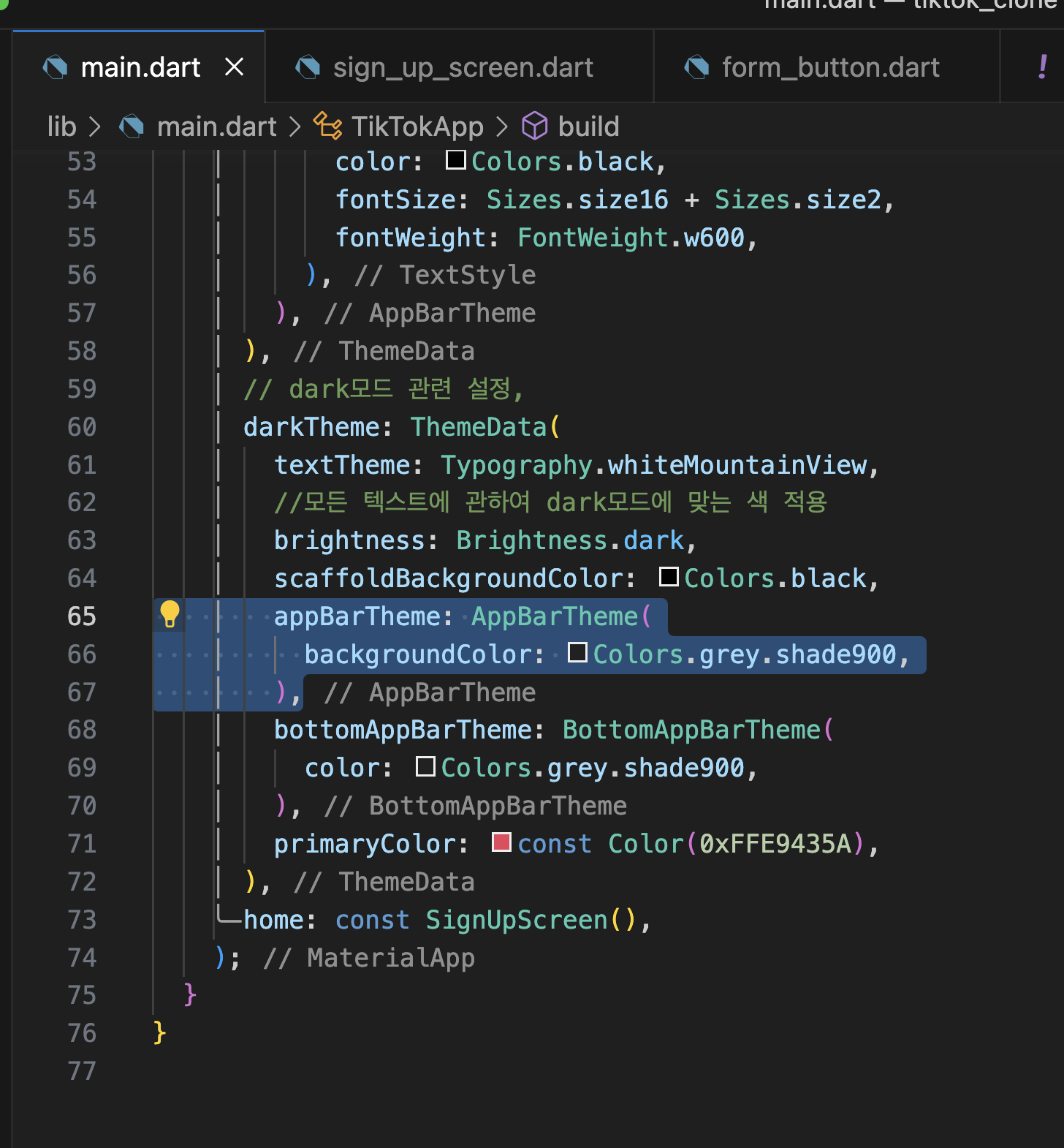 제일 좋은 방법은 main.dartp에 색 관련 설정 다 두기