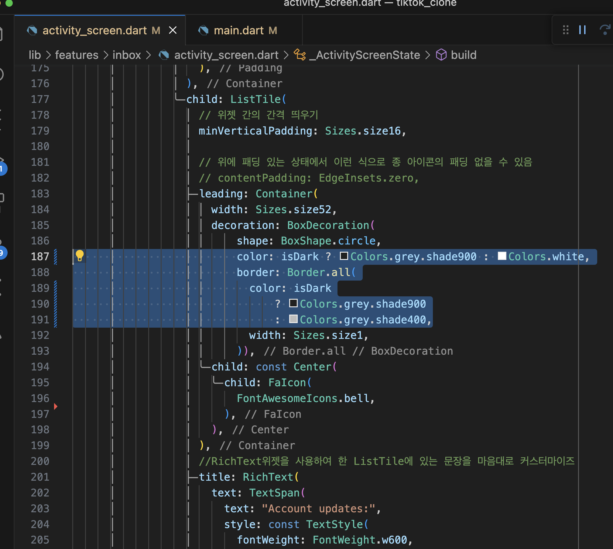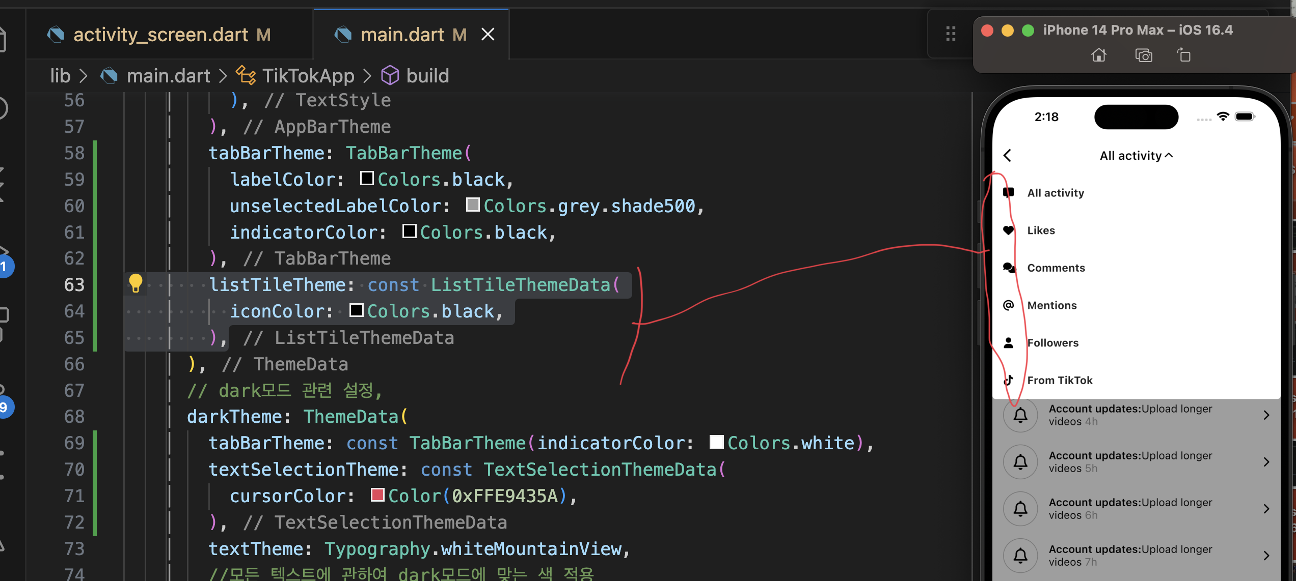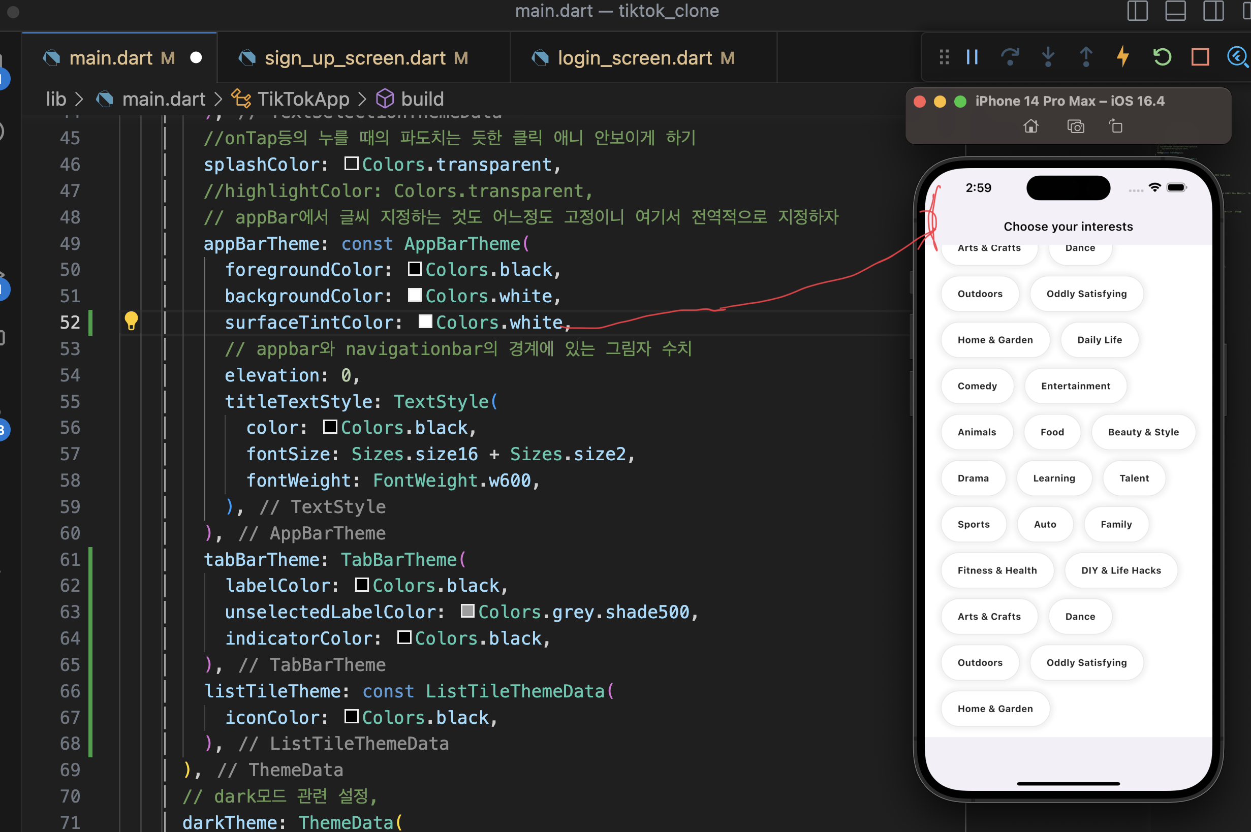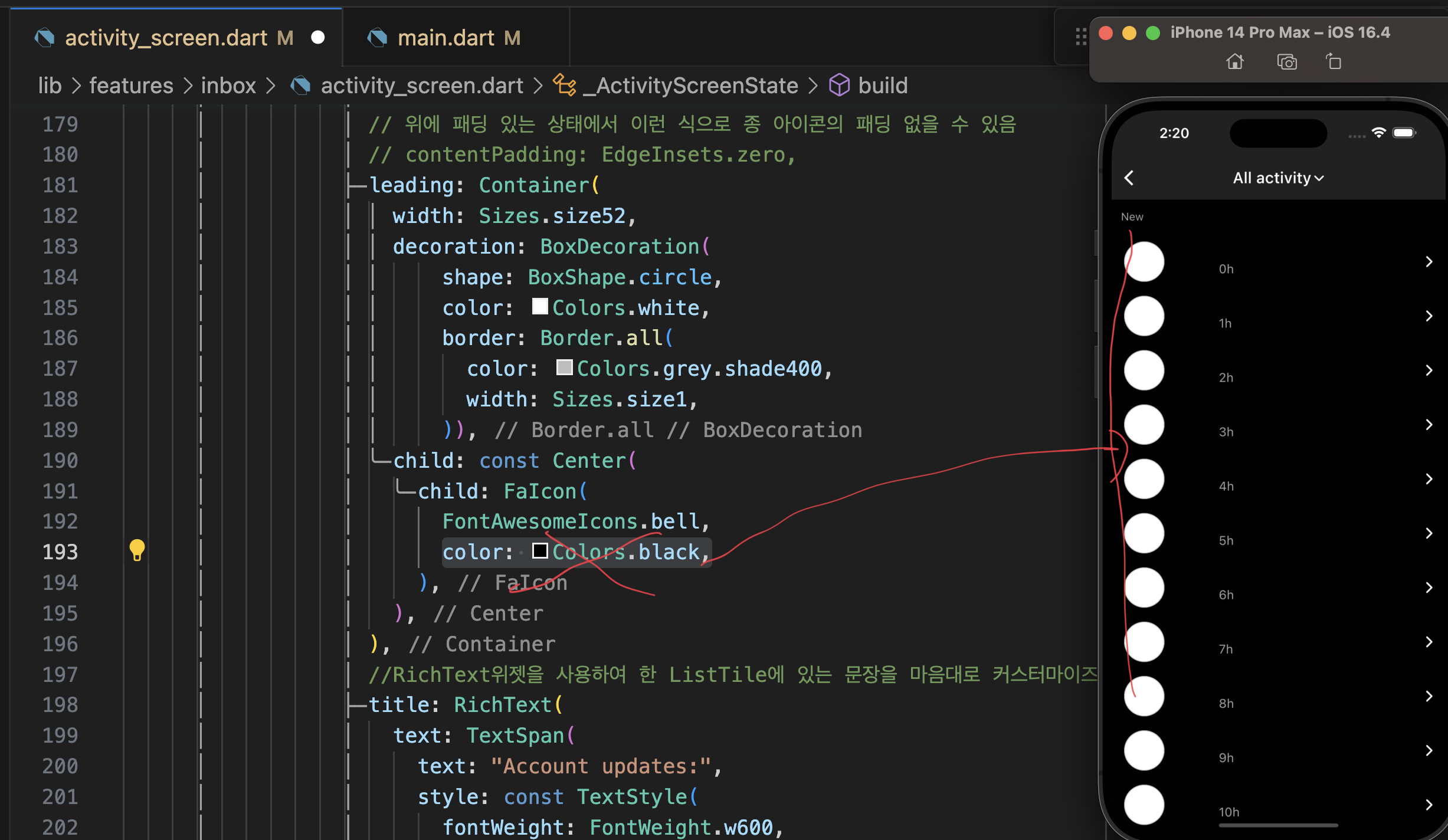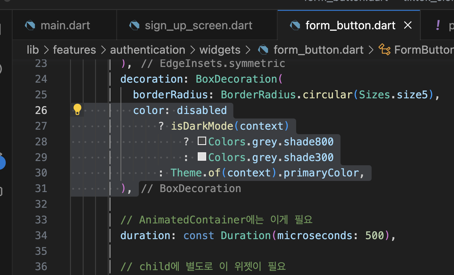 제일 좋은 방법은 main.dartp에 색 관련 설정 다 두기