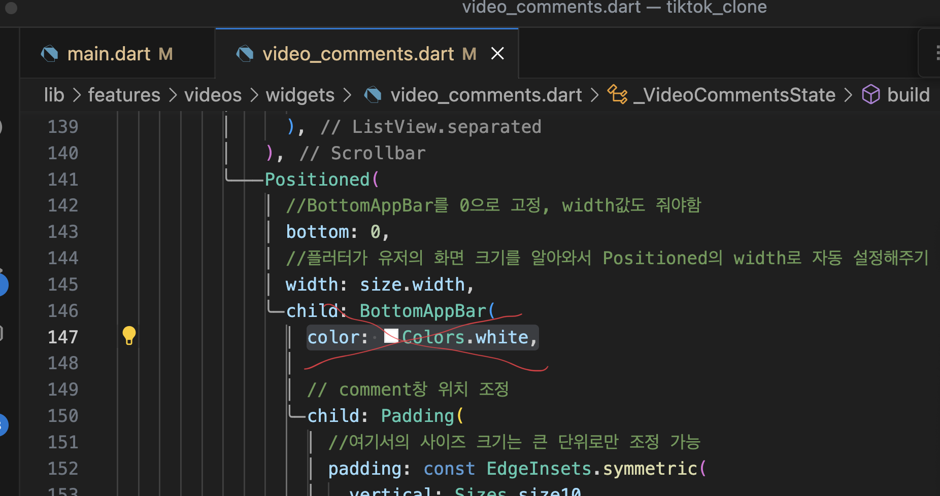 // 자세히 보면 scaffold는 약간 회색빛을 띄는데 이게 짜증나니 여기서 강제 흰색으로 지정