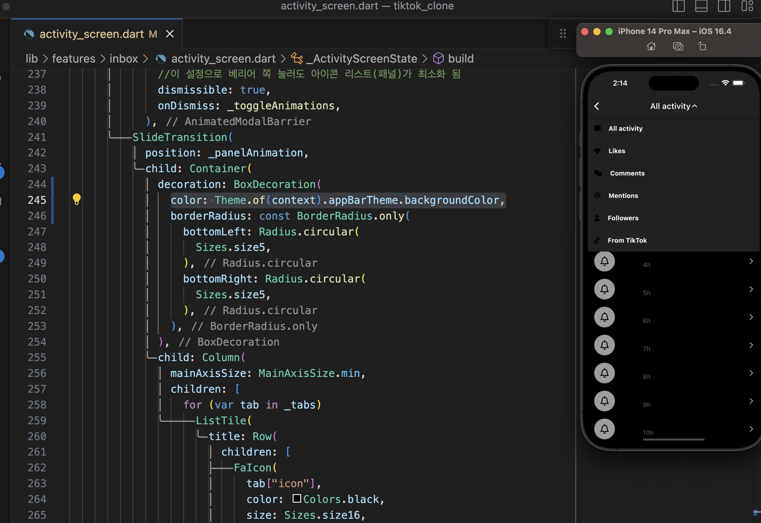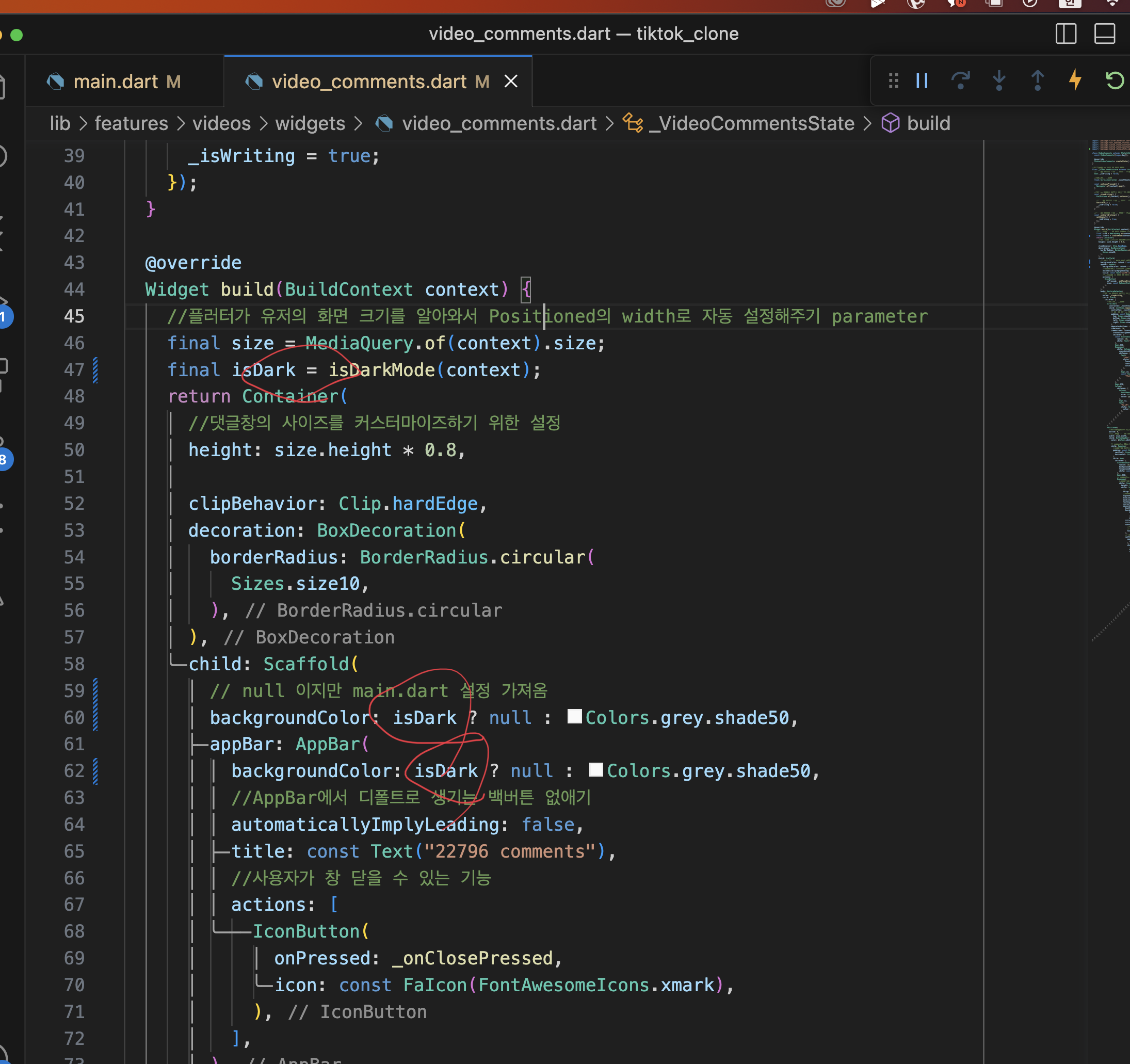 // dart모드 관련 설정: