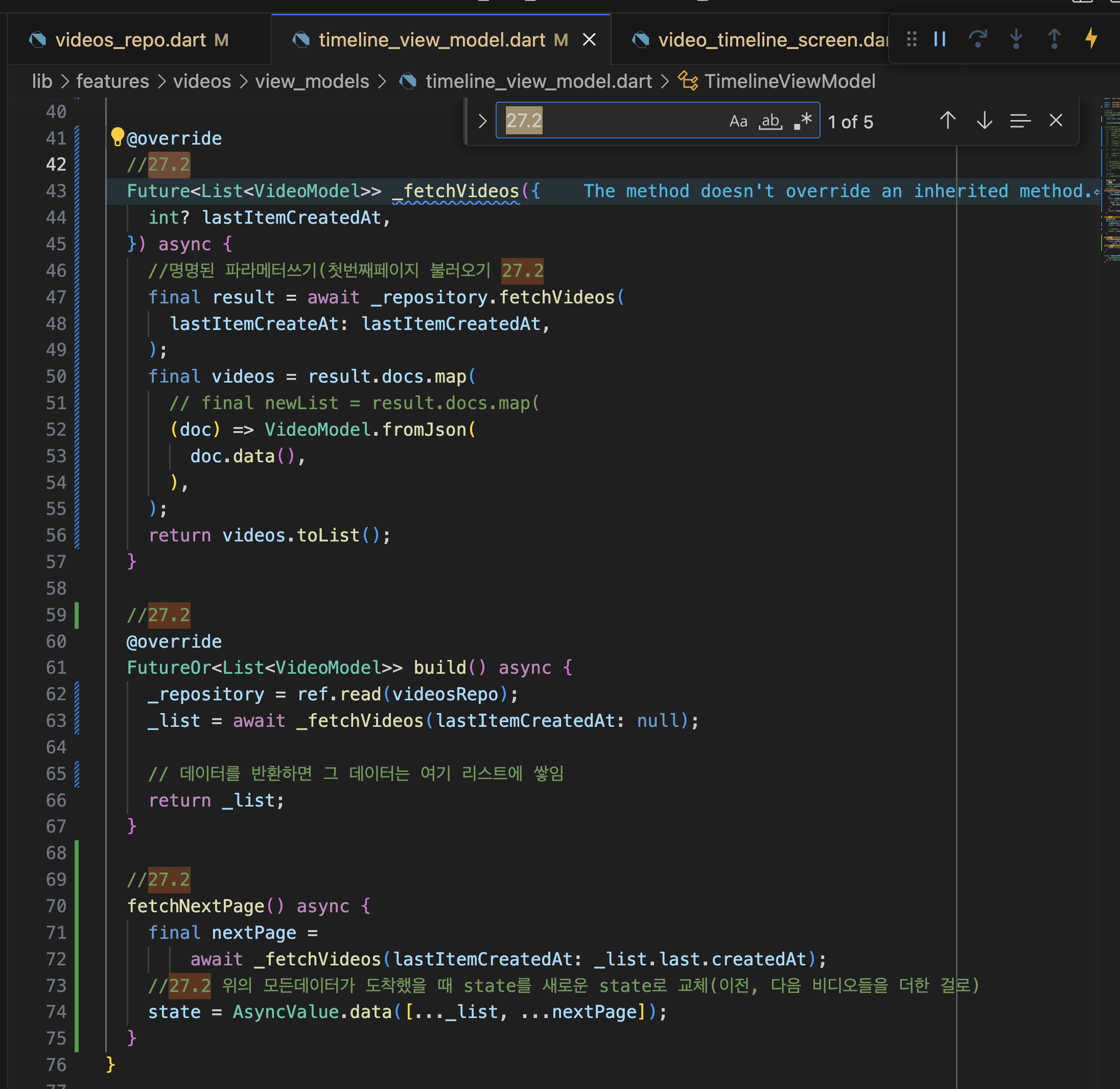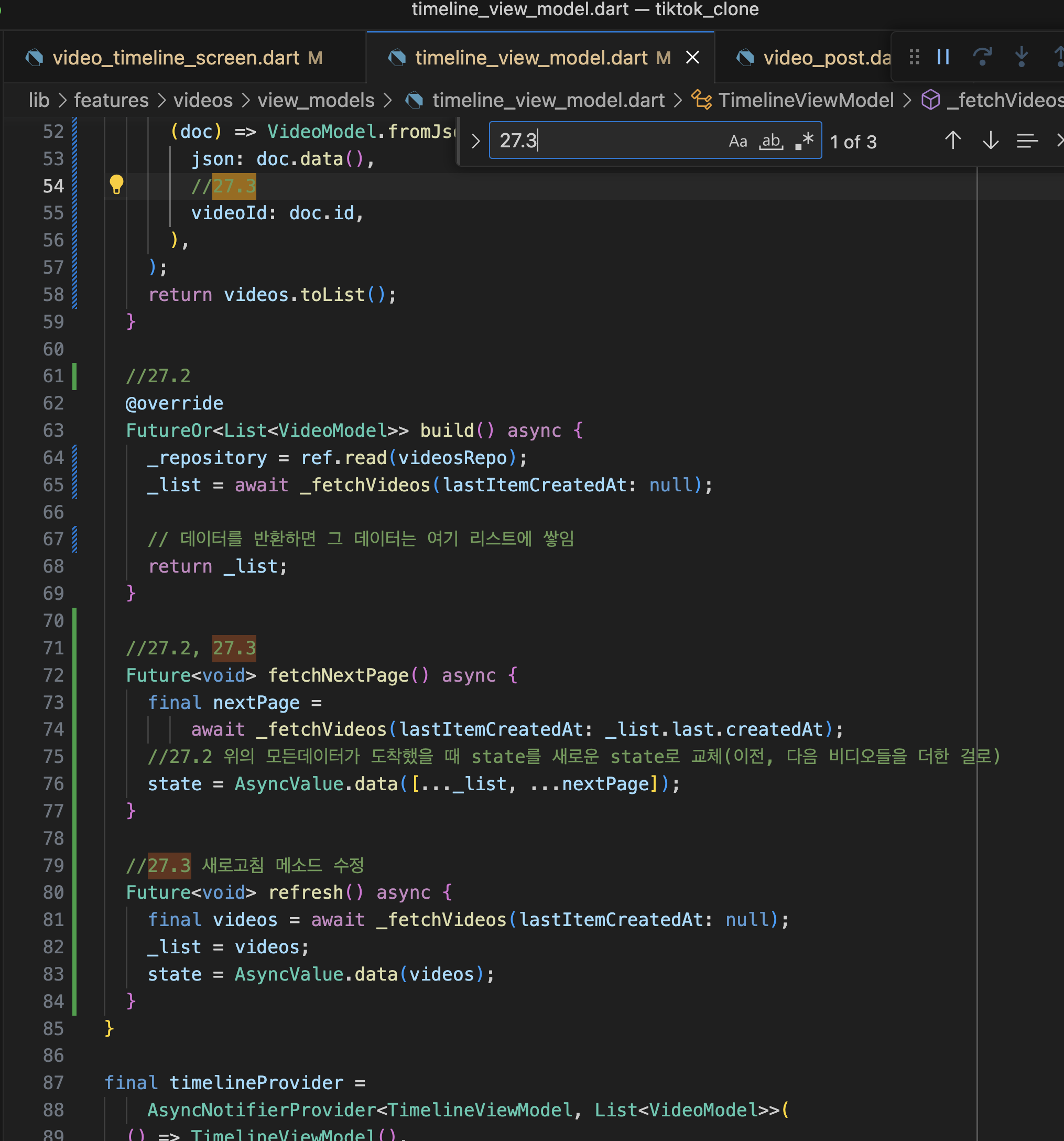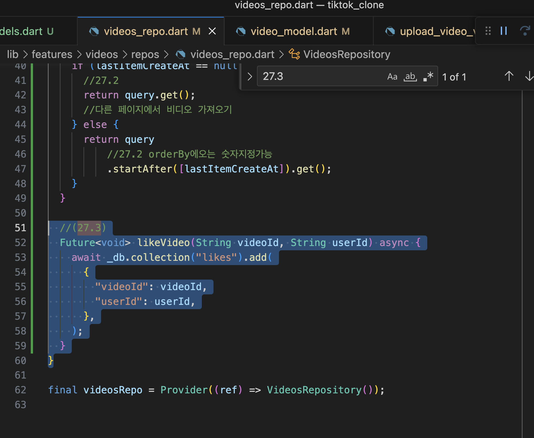 VIDEO TIMELINE 27.1 VideoPost 27.2 Infinite Firebase 27.3 FamilyAsyncNotifier 27.4 likeVideo 27.5 dislikeVideo 본문