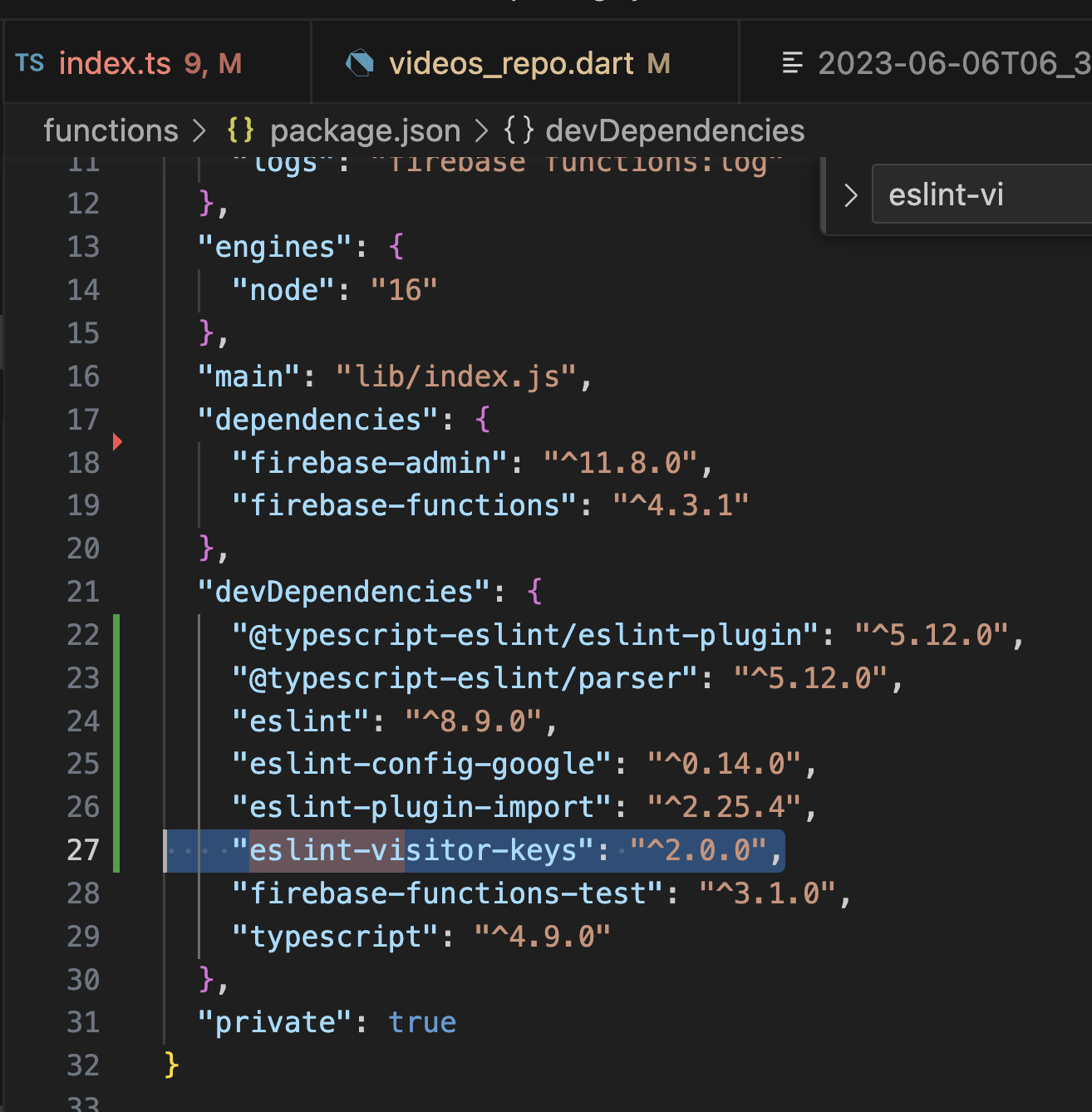 % firebase deploy --only functions === Deploying to 'tiktok-clone-b524f'... i deploying functions Running command: npm --prefix "$RESOURCE_DIR" run lint > functions@ lint /dart/tiktok_clone/functions > eslint --ext .js,.ts . Oops! Something went wrong! :( ESLint: 8.42.0