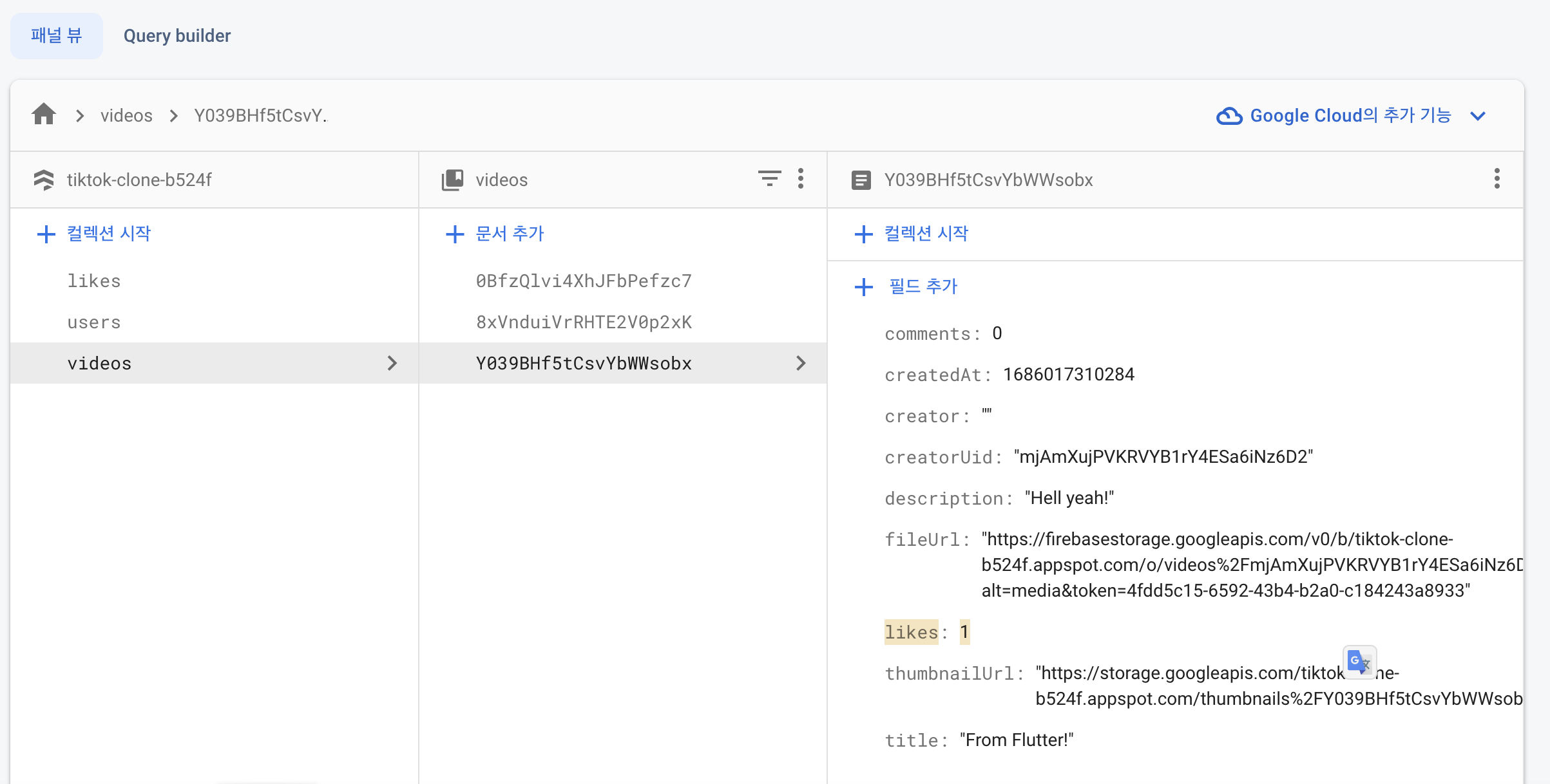 이런식으로 비디오아이디, 유저아이디가 같이 제목이 된다.