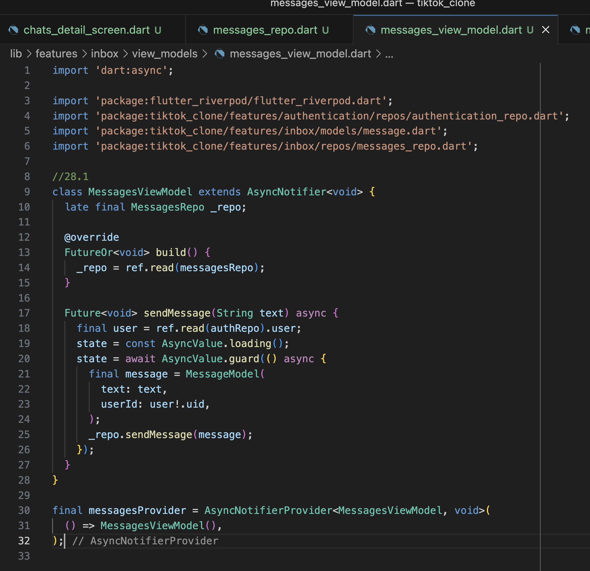 DIRECT MESSAGES 28.1 Send Message 28.2 StreamProvider 28.3 autoDispose