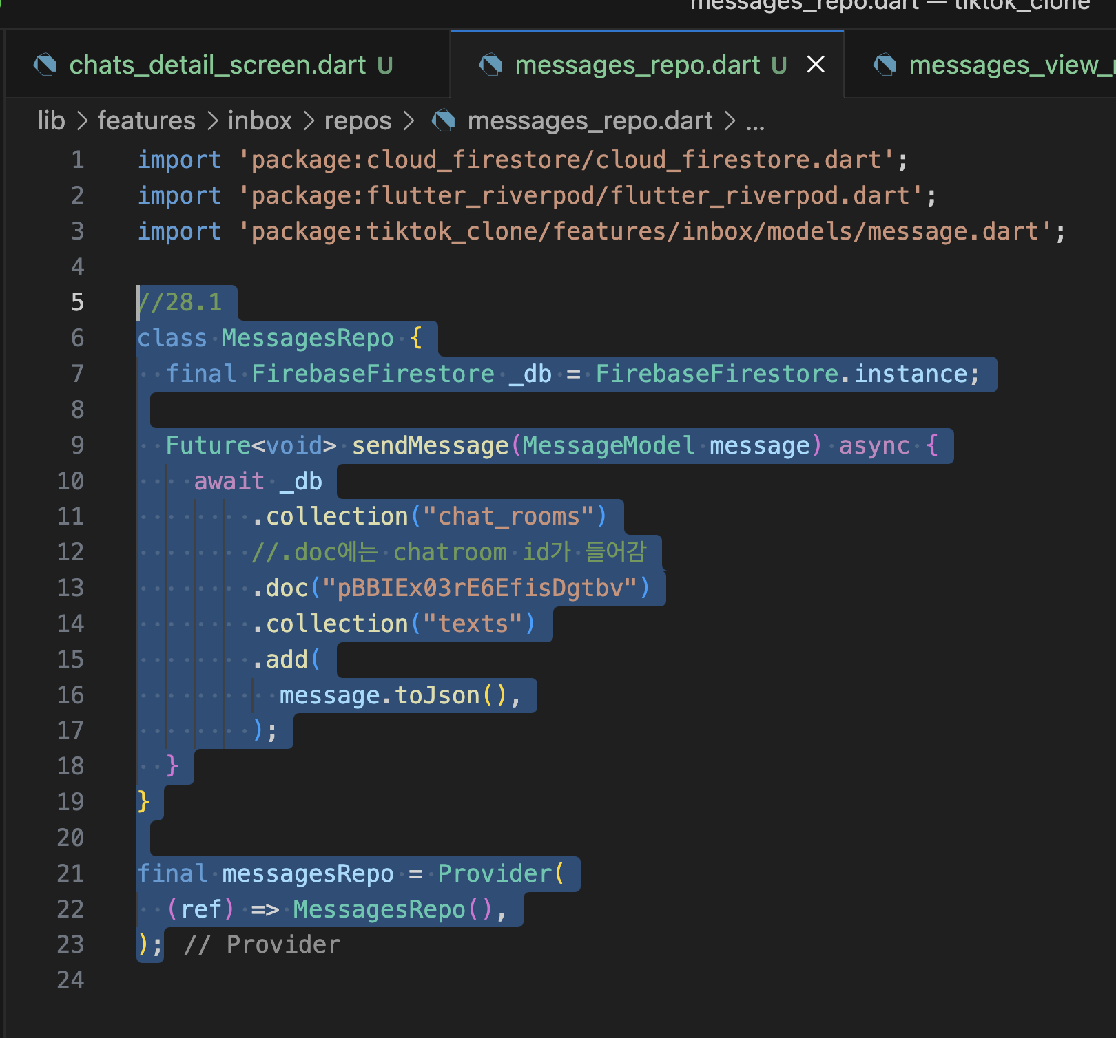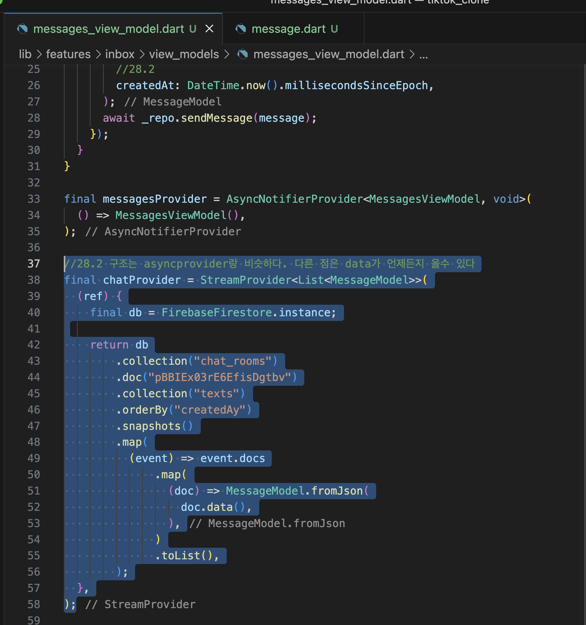 DIRECT MESSAGES 28.1 Send Message 28.2 StreamProvider 28.3 autoDispose 본문