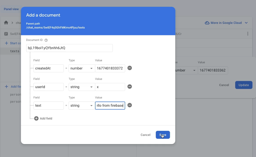 여기서 어떤게 변경되었는지 이벤트(어떤 데이터가 들어있는 QueryShnapshot)로써 받을 수 있음(챗이 삭제되거나 추가, 수정)
