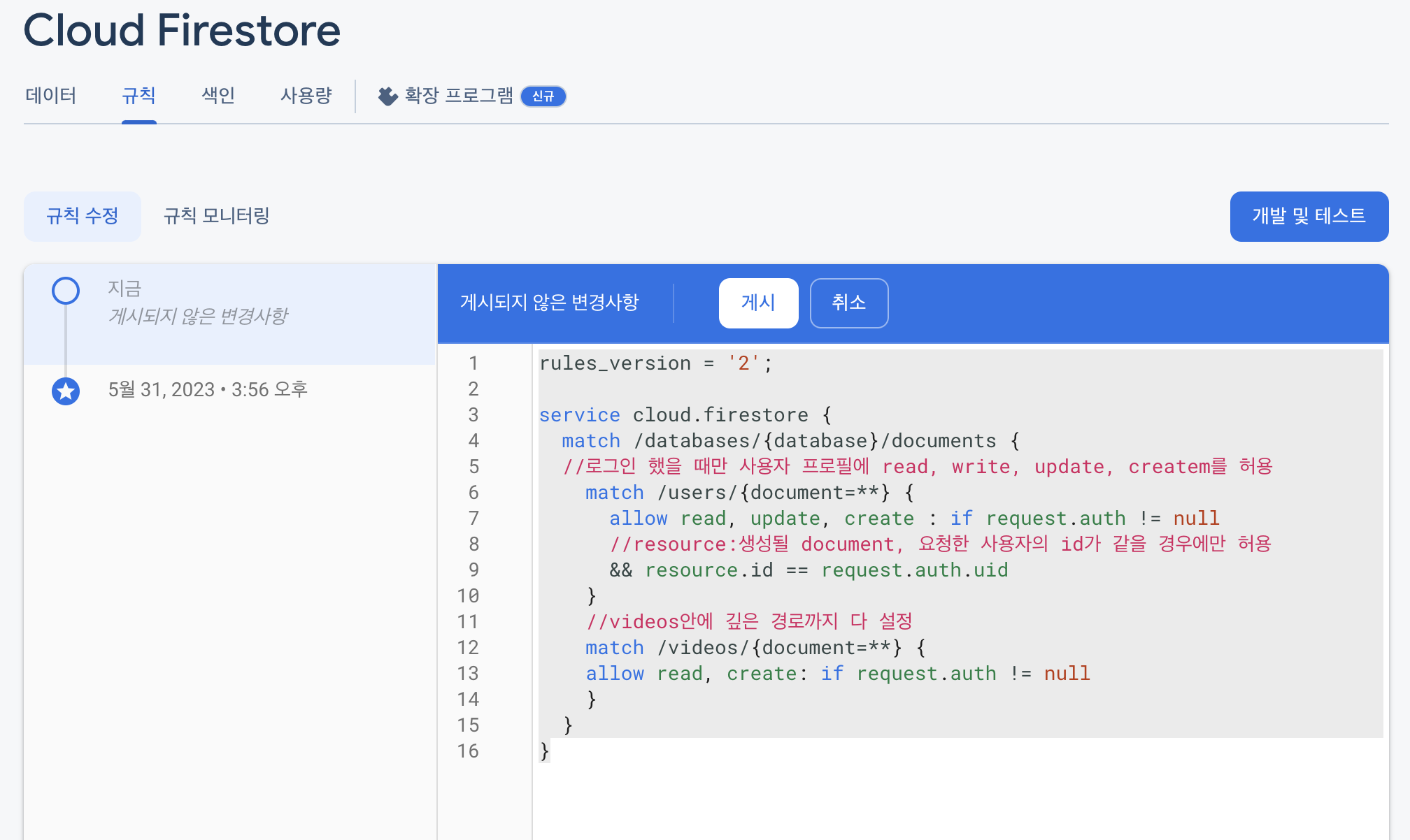 //resource:생성될 document, 요청한 사용자의 id가 같을 경우에만 허용30.1