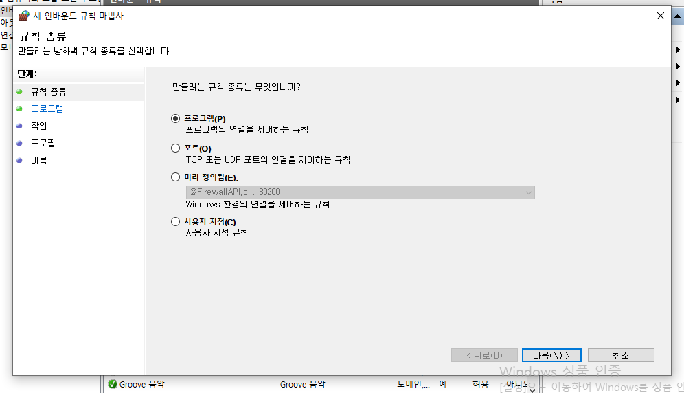 프로그램을 선택해준다.