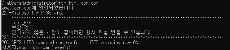 W10-1의 CMD에서 ftp ftp.joon.com으로 연결해준다.