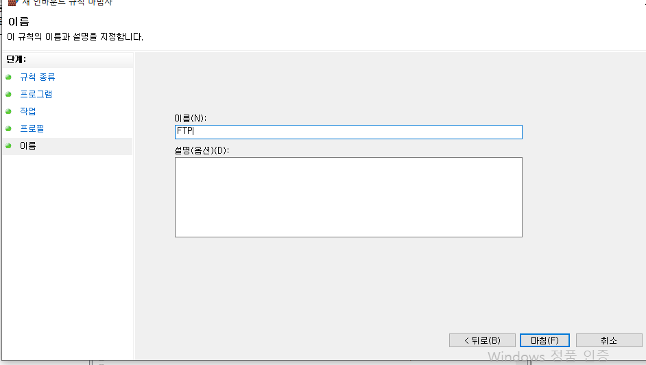 이름은 FTP로 해준다.