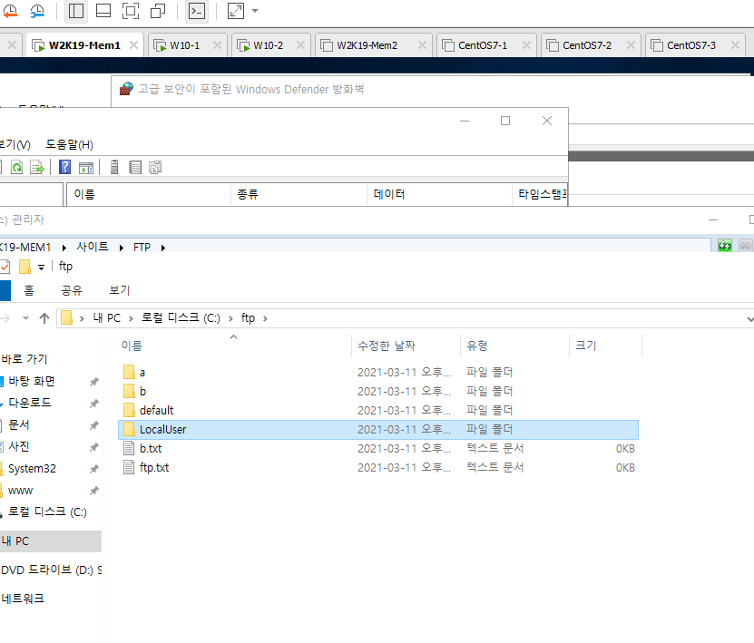 ftp폴더안에 default폴더는 익명 유저용으로 폴더를 만들어 준다.