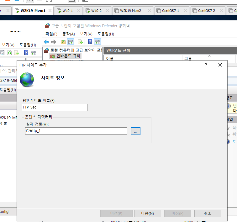 FTP사이트 이름은 FTP_Sec으로 해주고 실제 경로는 C:\ftp_1로 해준다.