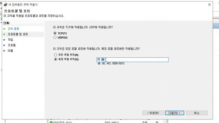 TCP로 20,21번을 지정해준다.