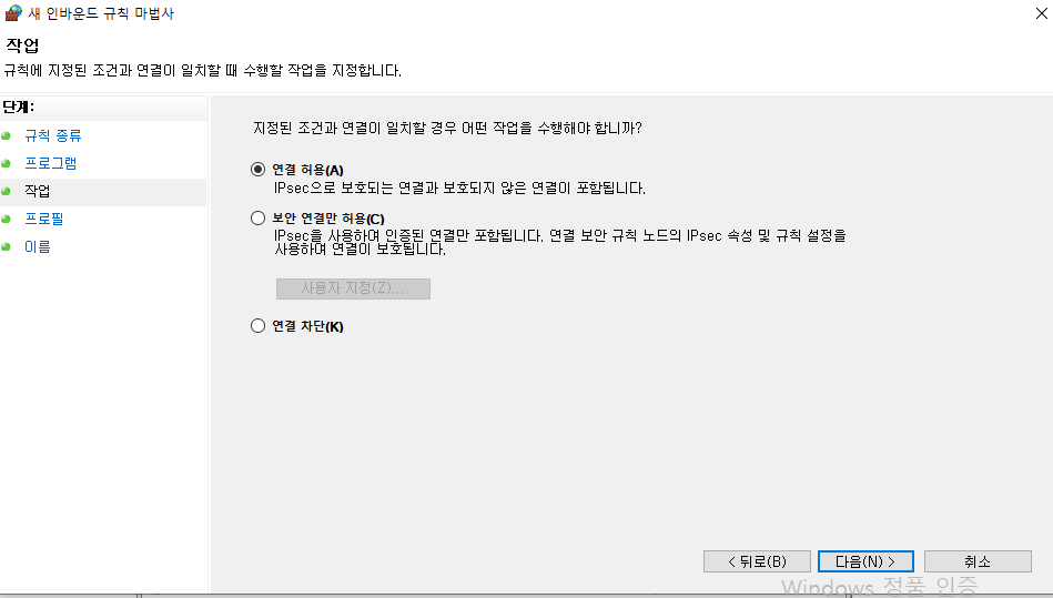 연결 허용 해주고