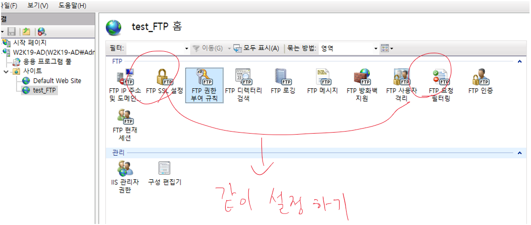 FTP SSL 설정과 FTP 요청 필터링은 세트로 설정해준다.