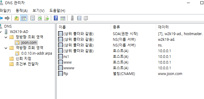 이름 ftp 주소는 www.joon.com으로 해준다.