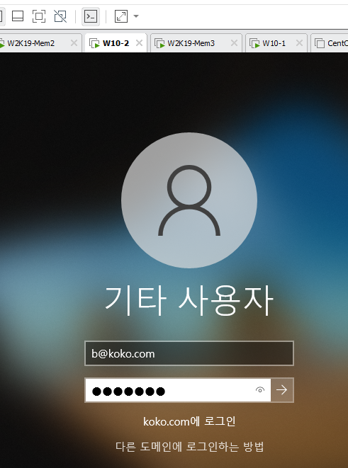 - 재부팅 후 koko.com의 b계정으로 로그인한다.